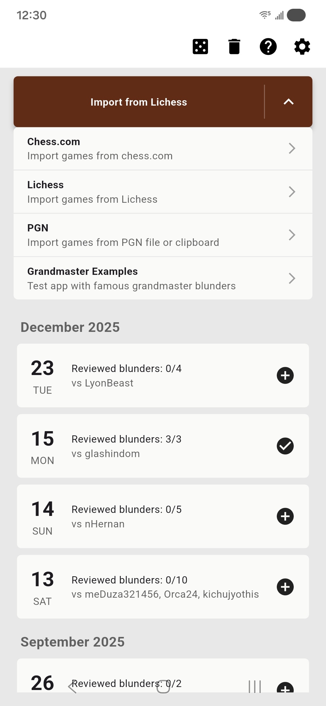 - Easily import your own chess games from various (online) sources such as chess.com or Lichess, or from your personal PGN files.